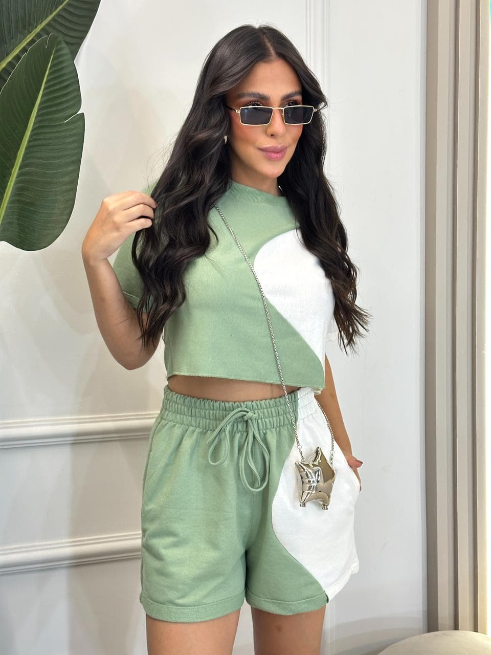 Conjunto blusa e shortinho branco/verde Milla